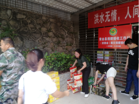 紫金县民政局收到捐赠物资后,第一时间制定工作方案,根据各镇具体受灾情况进行物资分配,并通知各镇社会事务办迅速领取,及时发放。