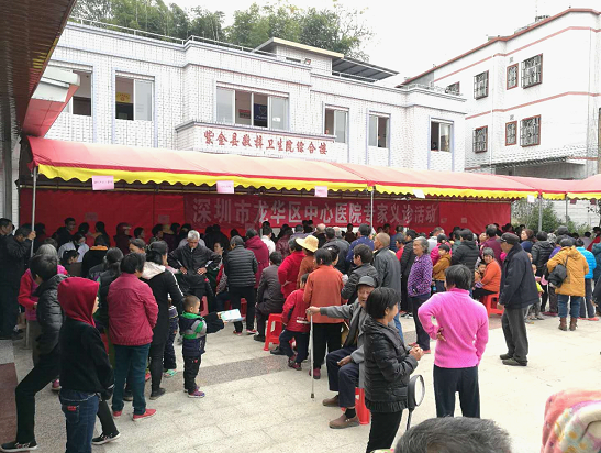 1月12日上午,深圳市委卫生工委专职副书记、纪工委书记廖澍华率龙华区卫计委局长何洪彬、龙华区中心医院院长吴义龙及龙华区中心医院20多位专家赴紫金县敬梓卫生院举行义诊活动。紫金县卫计局局长黄穗青、敬梓镇党委书记马睿、敬梓镇人民政府副镇长廖振样、敬梓镇卫生院院长廖俊权等陪同。