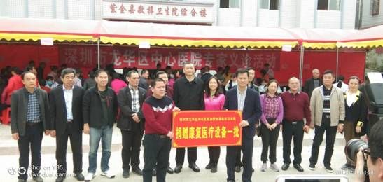 义诊活动前,首先举行捐赠仪式,在捐赠仪式上,吴义龙院长代表深圳市龙华区中心医院向敬梓镇卫生院捐赠康复医疗设备一批,价值100000余元。