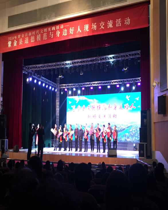 1月20日晚,在县文化活动中心举办了“2019年紫金县新时代文明实践活动---紫金县道德模范与身边好人现场交流活动”,县公共服务中心推荐的5位公共服务人光荣入选2018年紫金县十大系列“最美人物”之“最美公共服务人”,他们分别是:县市场监督管理局叶化平、县公共服务中心谢宝燕、县税务局第一分局练雄彬、县国土资源局不动产登记中心陈育彬以及敬梓镇人民政府公共服务中心刘德昌。