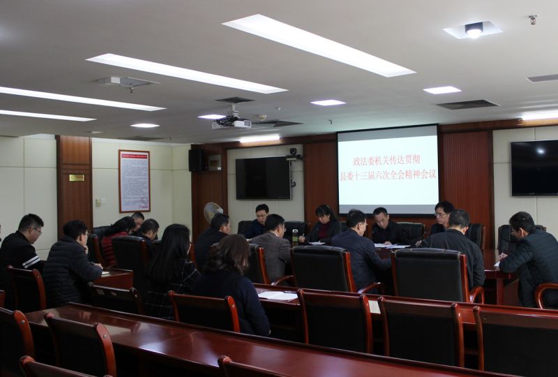 1月28日,县委政法委召开全体党员干部职工会议,专题传达学习县委十三届六次全会精神。