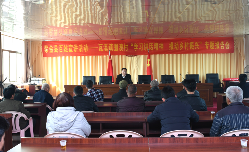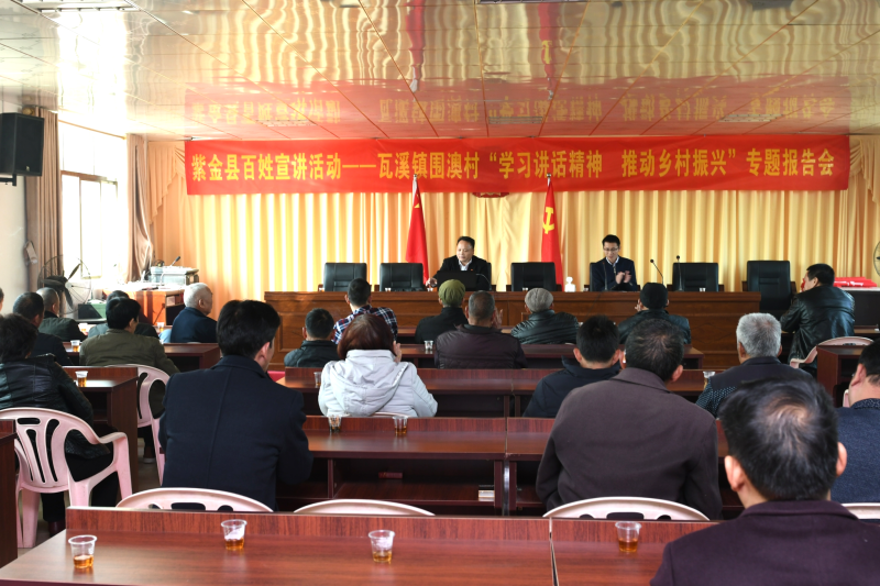按照县委宣传部的安排部署,1月24日,紫金县百姓宣讲活动走进瓦溪镇围澳村。县百姓宣讲团成员、县委党校教师郑福良来到瓦溪镇围澳村,以“学习讲话精神,推动乡村振兴”为主题,通过“学讲话、讲故事、谈感受”的形式,与围澳村党员干部和群众开展互动式宣讲活动。副镇长杨尚平,驻围澳村乡村振兴工作组组长、第一书记刘森波,围澳村党支部书记王伟锋等村“两委”干部参加了宣讲活动。