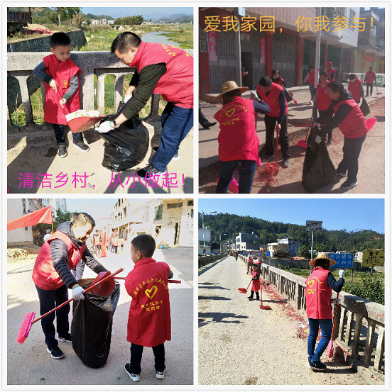 启动仪式后,志愿者们手持宣传旗帜、身穿志愿者服装,带着扫把、火钳、垃圾袋、铲子等工具前往敬梓桥头至中联圩田头桥头。志愿者们兵分几路,一组负责清扫河边、路边、桥边的果皮、纸屑、烟头等垃圾,另一组负责向村民派发环保倡议书,宣传环保知识,增强民众爱护环境,保护水源观念,号召大家一起参与“清洁乡村•我爱我家”的活动行列中去,呼吁人们保护环境,从我做起,用实际行动保护母亲河,为敬梓的碧水蓝天贡献自己的一份力量。