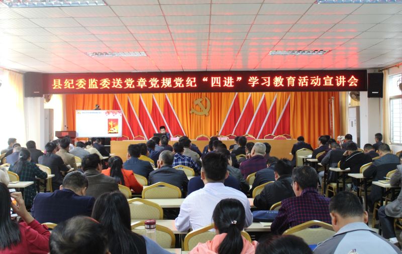据了解,此次“四进”巡回宣讲活动,是县纪委监委认真落实党的十九大报告“加强纪律教育,强化纪律执行”和全面从严治党的要求,学习贯彻执行好党章党规党纪的重要举措,也是推进落实中央宣传贯彻新修订《中国共产党纪律处分条例》、“两学一做”学习教育和“不忘初心、牢记使命”主题教育的专题内容之一。