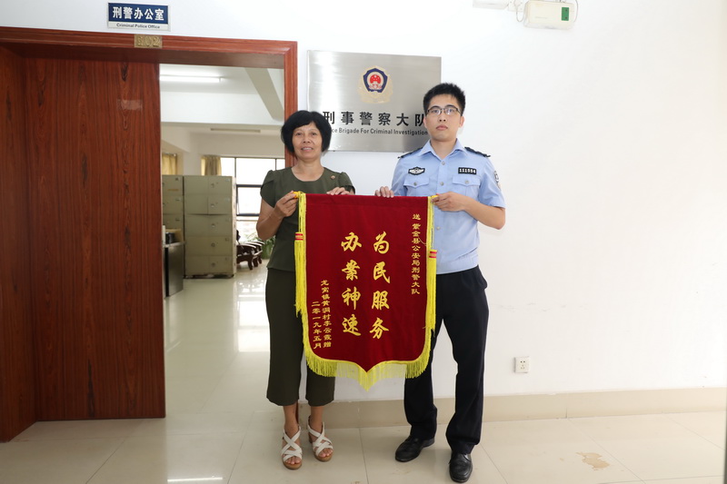 5月24日中午2时30分度,龙窝派出所在深入推进“飓风2019”专项行动工作中,接李女士报警称:其被自称系法院工作人员的钟某锋以帮助解决纠纷及安排其儿子到法院工作为由先后骗取共70000余元。接报后,我局刑侦大队立即联合龙窝派出所深入开展调查,依托智慧新警务平台,充分利用智慧新侦查技术,经过办案民警三个多小时连续作战,成功锁定涉案嫌疑人钟某锋的行踪轨迹。随后,办案民警迅速开展抓捕行动,并于当天下午5时多将涉案嫌疑人钟某锋成功抓获。经审讯,钟某锋对其虚构成县法院工作人员多次骗取李女士钱财的犯罪事实供认不讳,被依法作刑事拘留。在审讯过程中,办案民警得知赃款已被转移情况后,立即对涉案资金流动进行追查,最终为受害人追回56000元。李女士对此事心怀感激之情,于是,她专程送来锦旗,表达对公安机关及办案民警的感谢。