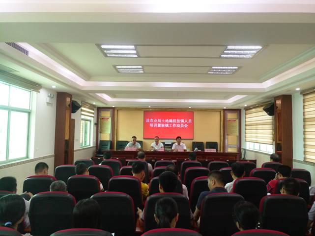 为深入贯彻落实省、市、县关于加快推进农村土地确权登记颁证工作部署,因地制宜地加快推进农村土地确权工作,力争按照省、市的部署要求如期完成确权任务(10月底完成颁证率80%以上,年底基本完成),县农业局决定在原来挂镇(局长负总责,局4名领导各挂4个镇,每个镇挂镇成员约6-7人)的基础上,指定一名挂镇人员为驻镇工作人员,全力指导、督促镇、村确权工作的落实。7月14日,县农业局组织召开了土地确权挂镇人员培训暨驻镇工作动员会,会议由副局长陈广泉同志主持,县农业局全体挂镇和驻镇人员参加了会议。