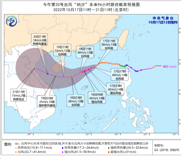预计,18-19日,受冷空气和台风“纳沙”的共同影响,有一次大风降温过程,以阴天间多云天气为主,有阵雨;20日起转受副高控制,以晴到多云天气为主,气温逐日回升。