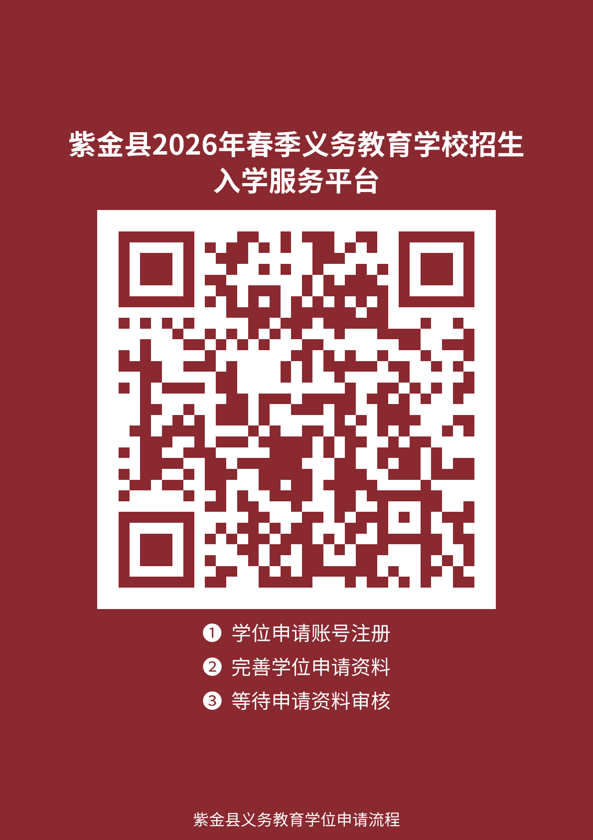 方式一:手机端登录,申请人通过扫描二维码进入紫金县义务教育“入学一件事”服务平台,注册登录。