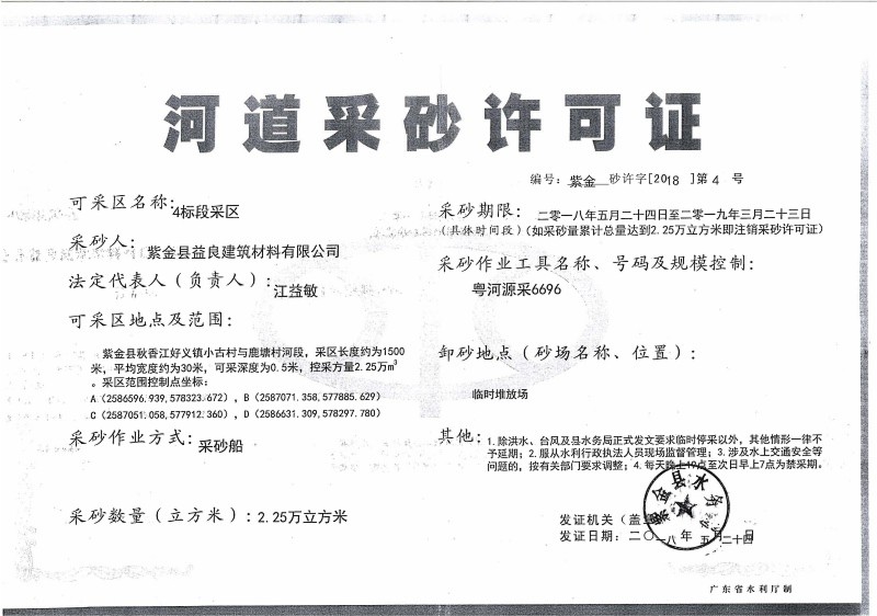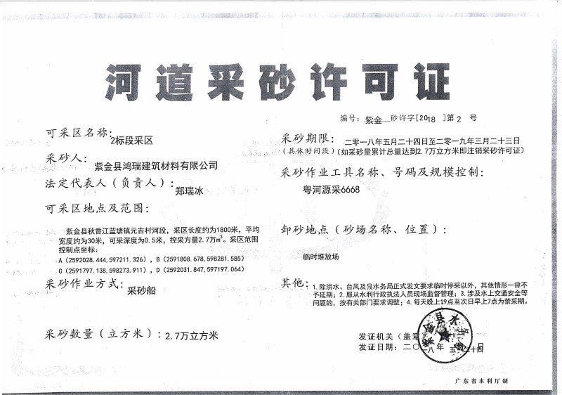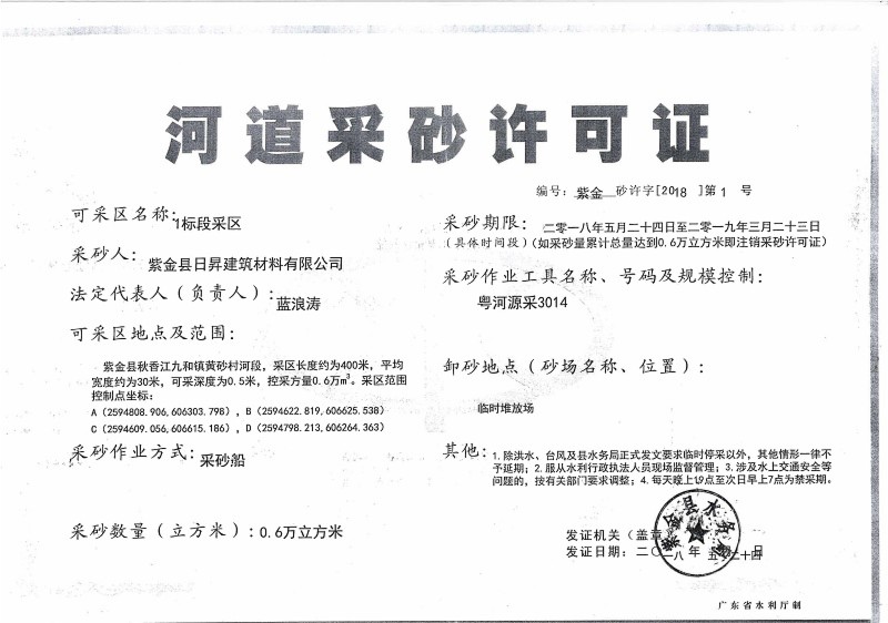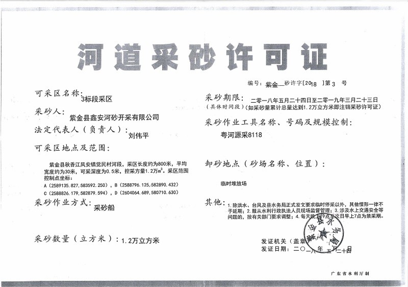 2018年河道采砂许可证